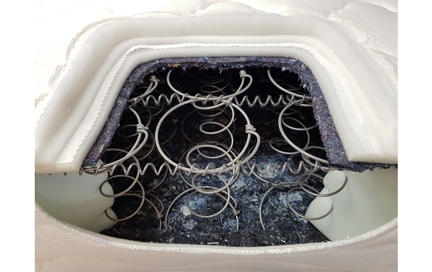 1- فاقد قاب فولادی و همچنین فاقد ستونهای فنری تخت M شکل در دیواره داخلی تشک. (اسکلت فنر در این تشک توسط قاب فولادی، مهار نشده و این موضوع سبب انعطاف و نرمی زیاد در این تشک شده است)